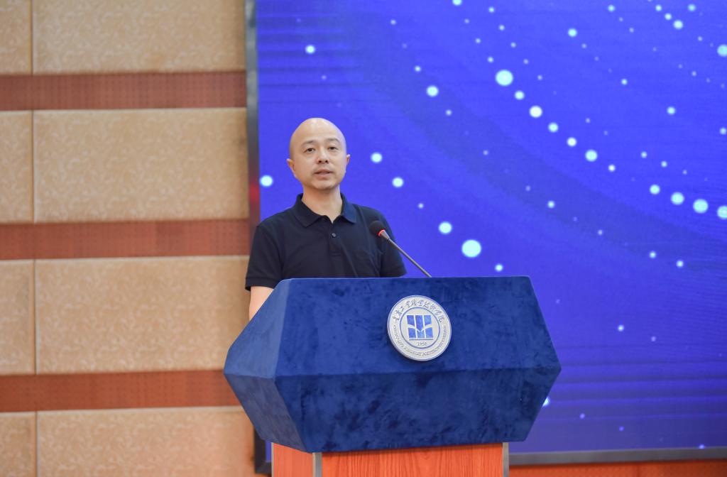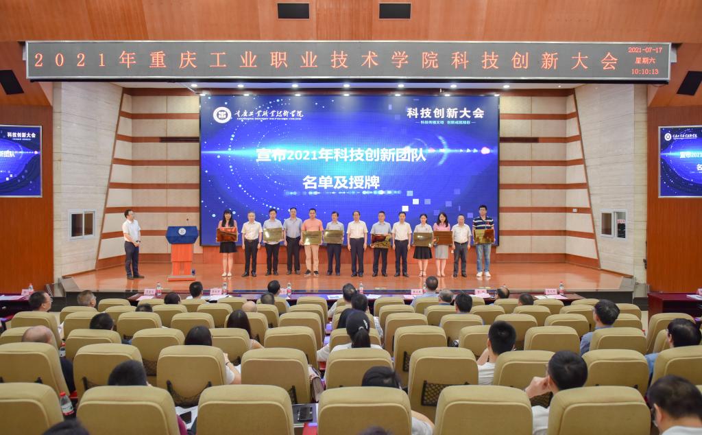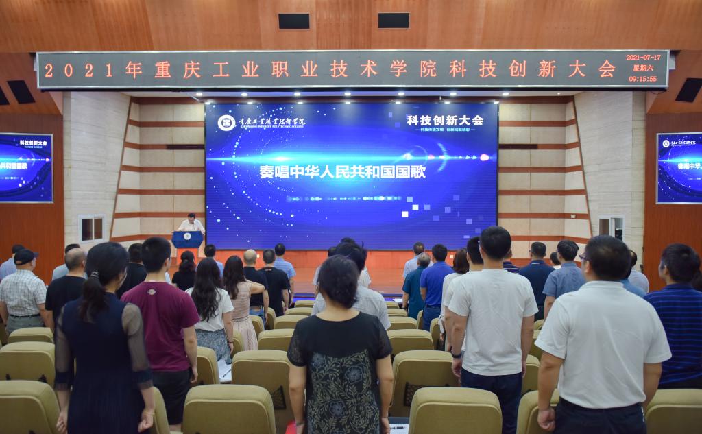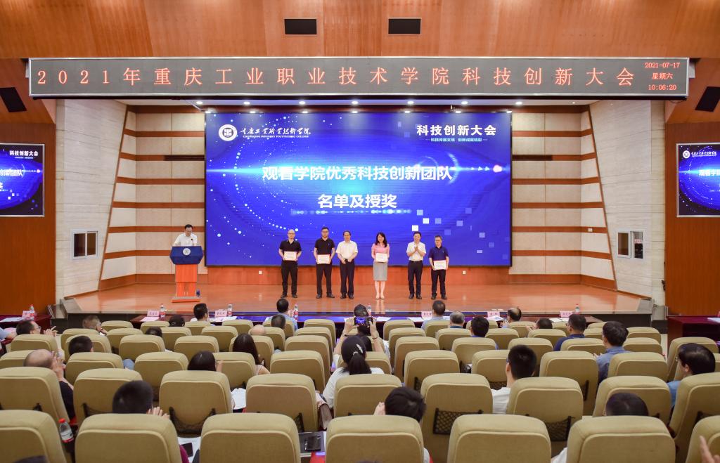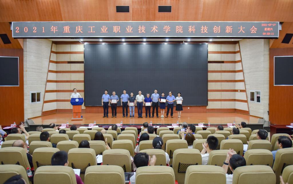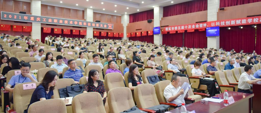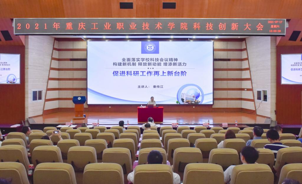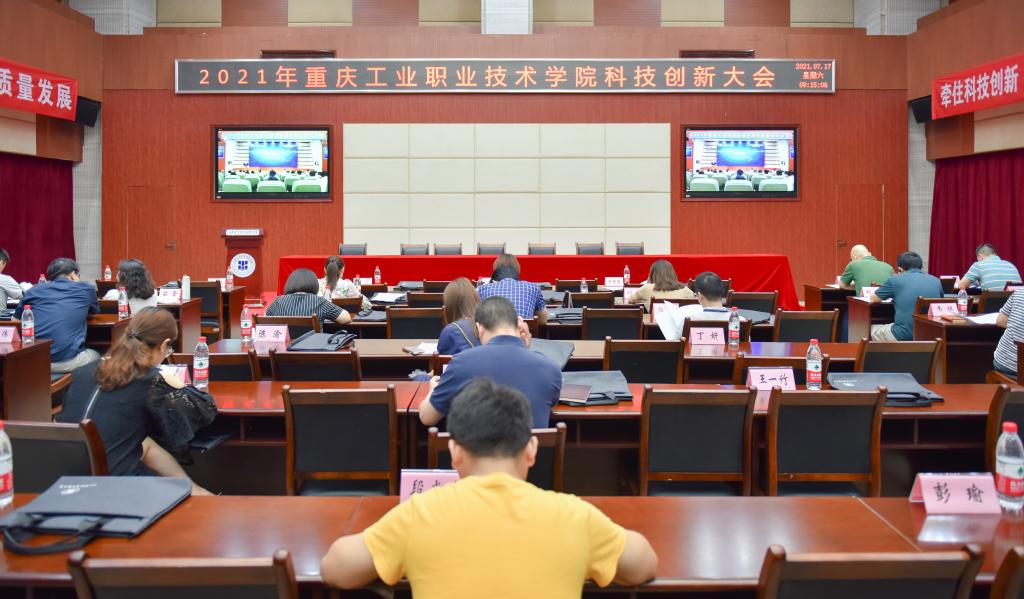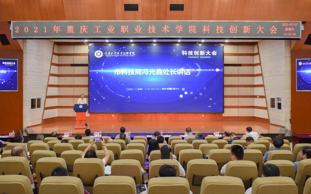 为深入学习贯彻习近平总书记关于科技创新的重要论述,认真贯彻市委五届十次全会部署要求,进一步落实市高校科技创新大会工作安排,赋能“双高”建设,推动学校科技研发、技术服务、成果转化的高质量发展。学校于7月17日全天召开了2021年科技创新大会,通过设置第一、二学术报告厅主会场和各二级单位分会场组织全校教职员工参会。市科技局基础研究处处长冯光鑫、市科协企事业部部长王昌志、市教委科技处副处长樊汶樵、渝北区科协党组书记童杭军、渝北区科技局副局长袁野出席会议。全体校领导,各职能部门副科级以上干部,各二级学院教职工代表等在主会场参会。