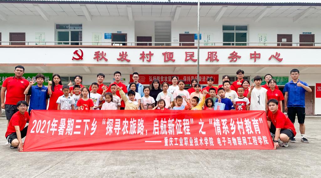学校电子与物联网工程学院大学生志愿者暑期“三下乡”社会实践团队走进綦江永城镇中华村和丁山镇秋发村开展活动。活动中,实践团队参观了王良同志纪念馆和王良故居,在瞻仰、回望与思索中感悟了中国共产党人的初心与使命。实践团志愿者们在秋发村组织了教育关爱服务活动,为孩子们讲红色故事并组织了充满欢声笑语的足球、篮球课堂,让公益课堂成为孩子们的“快乐大本营”。志愿者们积极在秋发村开展了“携手电器·服务村民”志愿服务活动,用自己的专业知识技能为村民维修电器、解决难题。此外,实践团调研小组还实地调研了秋发村生态蓝基地的建设发展情况,深入了解了蓝莓种植技术,并通过收集相关数据、进行对比分析,撰写调研报告,积极为村民们在蓝莓基地发展上出谋划策,助力当地乡村振兴。