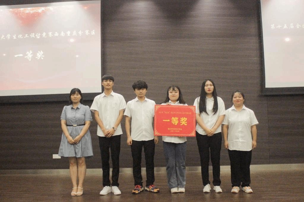7月22至24日,2021年第十五届全国大学生化工设计竞赛西南赛区重庆分赛区决赛暨“化医杯”第十一届重庆市大学生化工设计竞赛在重庆大学虎溪校区举办。本次比赛共有来自11所高校的66支队伍参赛,39支队伍进入决赛。同时,2021年“京博石化杯”第十五届全国大学生化工设计竞赛西南赛区决赛于8月1日至5日在西南石油大学线上举办,共有来自重庆、四川、云贵分赛区的60支队伍参赛。在学校化学与制药工程学院卢立娟、常禹两位指导老师带领下,由刘可涵、杨智勋、董一涛、李尘益和於友佳5位学生组成的“小马过河”团队同时获得第十一届重庆市大学生化工设计竞赛及第十五届全国大学生化工设计竞赛西南赛区决赛一等奖。