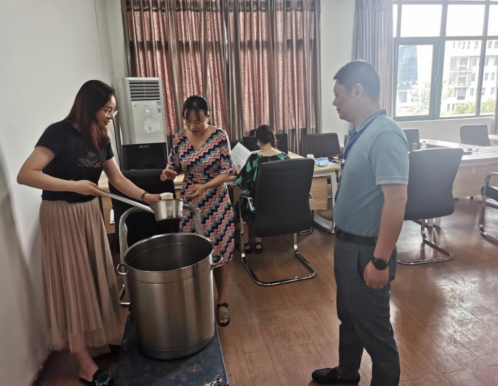 支部党员同志们抓配凉茶方子,制作了清暑散热、提神醒脑的解暑凉茶并依次分装送至学校招生就业处、行政楼各办公室及基建工作现场等,为到校参加招生联系工作的教职工、基建及物业工作人员等送去了清凉,以实际行动为师生办好实事。