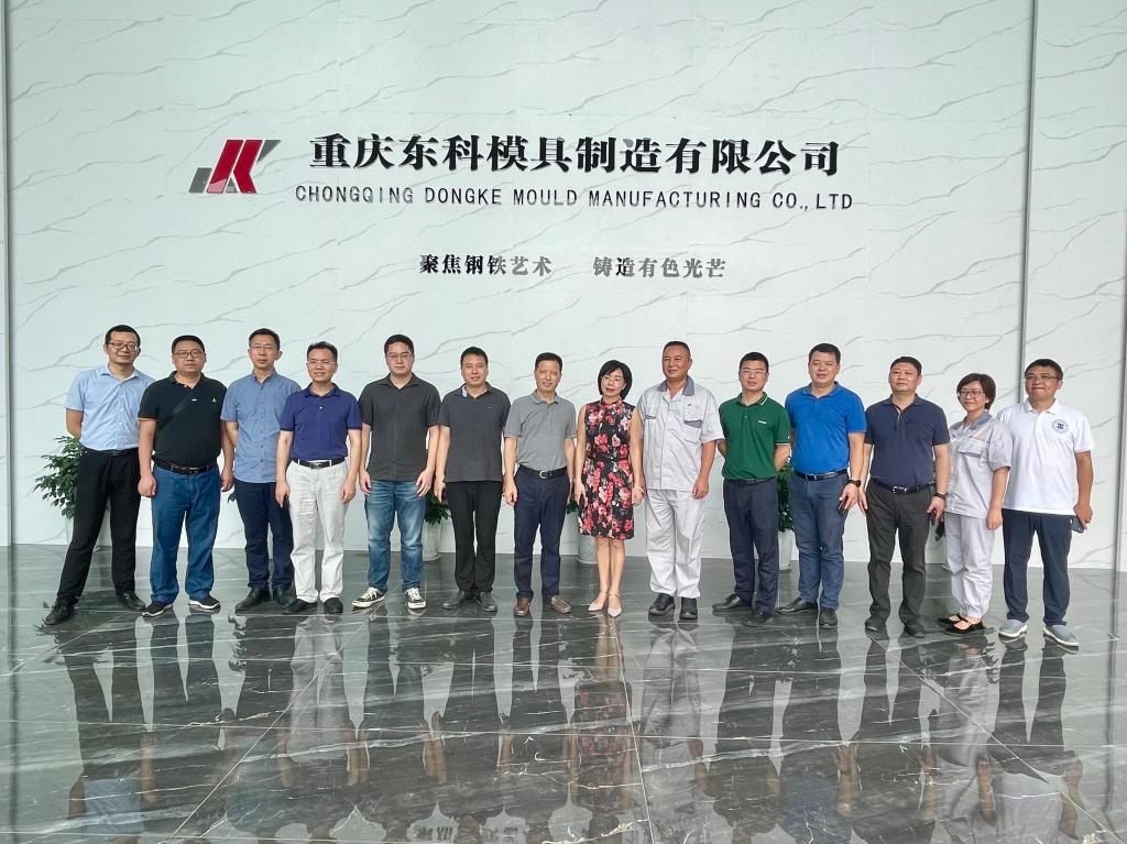 为落实教育部办公厅《关于开展2021年“小我融入大我,青春献给祖国”党史学习教育实践活动的通知》要求,开展好高校毕业生就业状况跟踪调查,深入了解不同单位及岗位实际,推进校企合作办学,8月24日,学校院长郭天平,校企合作处处长袁苗达,招生就业处副处长唐腾健,教务处副处长雷正桥,机械工程与自动化学院副院长赵国际及相关负责人等赴重庆东科模具制造有限公司开展党史学习教育实践专项调查活动。重庆东科模具制造有限公司总经理范小兰及相关负责同志热情接待了调研组一行并带领调研组参观了公司的最新产品、工厂车间与生产一线。双方就校企合作相关事宜展开座谈。