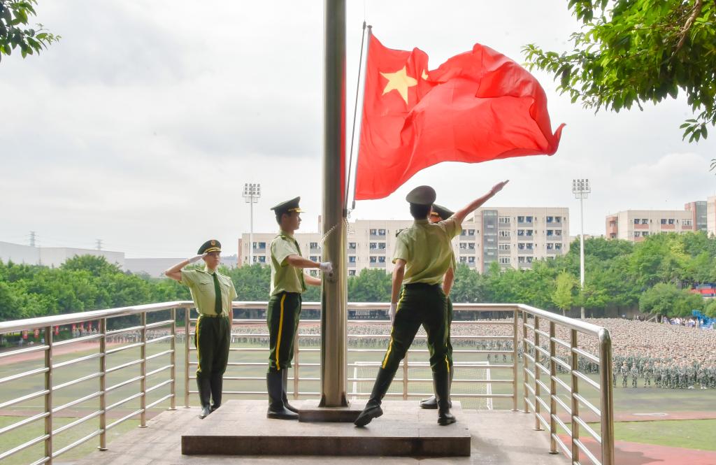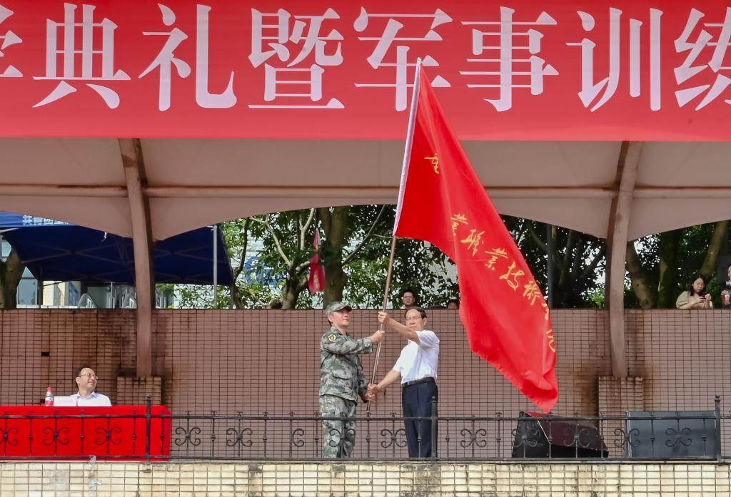 随后,学校党委书记王官成为军训团授旗。至此,2021级新生军训正式开始。