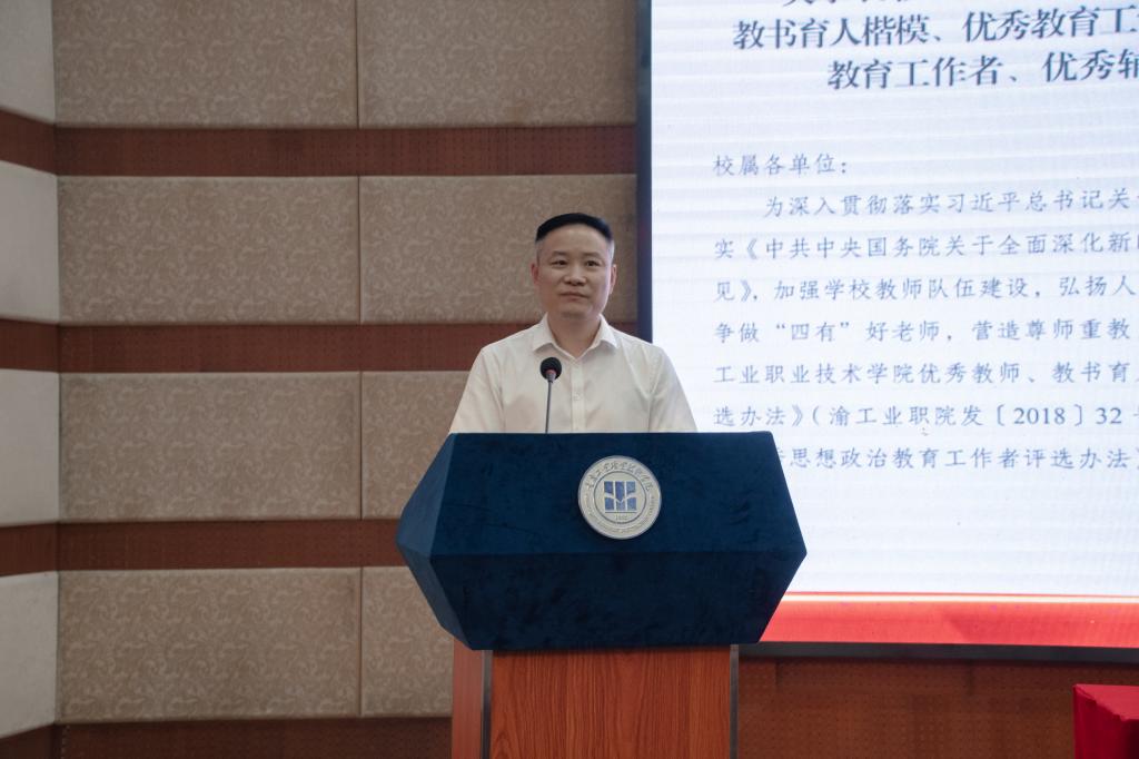 会上,学校党委书记王官成宣读了《习近平给全国高校黄大年式教师团队代表的回信》;学校党委副书记、院长郭天平通报了2020—2021学年集体和个人获得省市级以上表彰奖励情况;学校副院长赵柏森宣读了《关于表彰2020—2021学年优秀教师、教书育人楷模、优秀教育工作者、优秀思想政治教育工作者、优秀辅导员的决定》,主席台领导为获奖教师和集体代表颁奖。