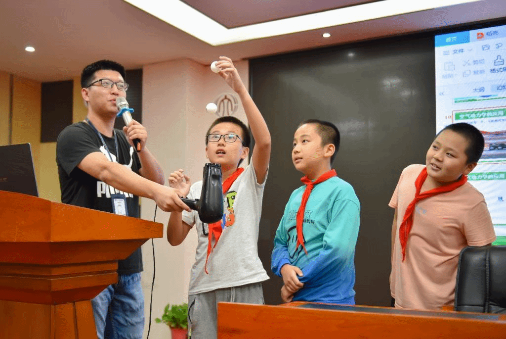 活动中,我校化学与制药工程学院宋阳博士作了题为“生活中的化学小常识”的科普讲座,从衣、食、住、行的角度介绍了日常生活中蕴含的化学知识和原理,同时向小朋友介绍了“如何写密信”“紫甘蓝变色反应小实验”等运用日常生活用品可操作的化学小实验。随后,我校机械工程与自动化学院董梦瑶博士作了题为“手可摘星辰”的科普讲座,介绍了从人类早期对飞行的探索到实现当代航空航天“太空梦”的发展历程,并通过邀请小朋友上台演示“吹风机-乒乓球”小实验的方式,生动地阐释了飞机背后蕴含的空气动力学原理。两位博士在讲座过程中积极与学生互动,鼓励学生积极思考和动手实践,发现和探索日常生活中蕴含的科学道理,帮助学生增长科学知识,培养科学兴趣。