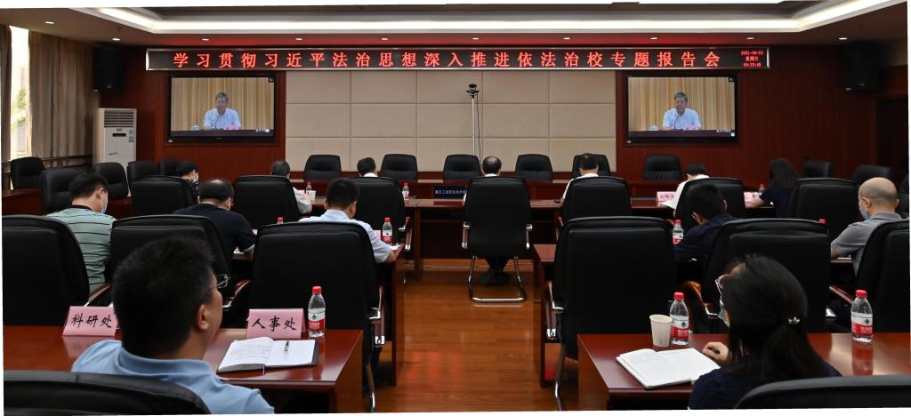 学校党委书记王官成结合会议精神强调了四点要求:一是要做到“知”,要认真学习领会习近平法治思想,深入推进依法治校;二是要做到“建”,各部门要建全完善全面依法治校相关制度,切实提升制度的关键性、支撑性、逻辑性及系统性,全面构建以及学校章程为统领的制度框架体系;三是要做到“行”,要全面提升执行力,促进学校治理体系和治理能力现代化;四是要做到 “严”,各职能部门要强化要担责任担当,要严格落实依法治校的相关制度,切实保障工作实效。