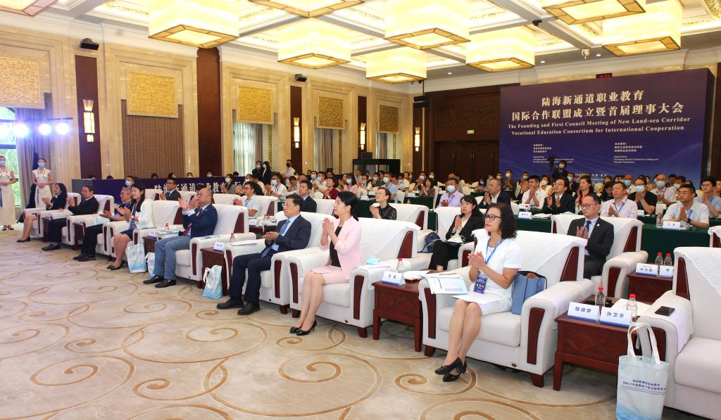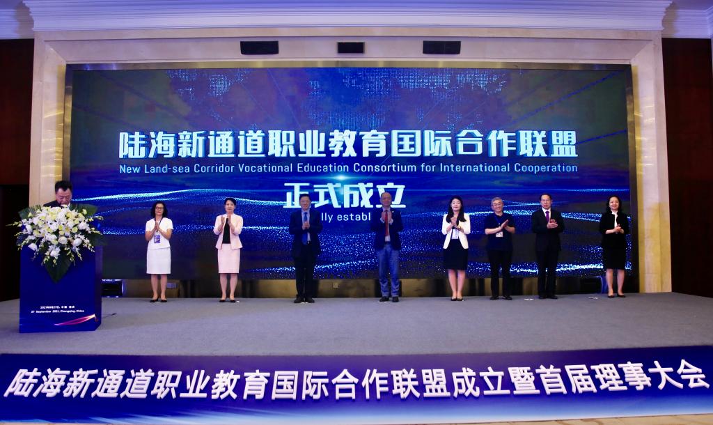 9月27日下午,由我校联合承办的陆海新通道职业教育国际合作联盟(以下简称“联盟”)成立暨首届理事大会在渝举行。教育部国际合作与交流司亚非处副处长郑晗,中国教育国际交流协会副秘书长余有根,市委教育工委委员、市教育委员会副主任邓沁泉,四川省教育厅二级巡视员程微梦,市人民政府外事办公室党组书记王雯,西藏教育厅二级巡视员李志鹏出席会议。此外还有110所院校代表、包含来自新加坡、马来西亚、菲律宾等国家的25所境外院校代表、20家企业代表,共计200余人通过线上、线下方式参会。大会线上图文直播浏览量达80余万人次。大会由重庆电子工程职业学院党委书记孙卫平主持。