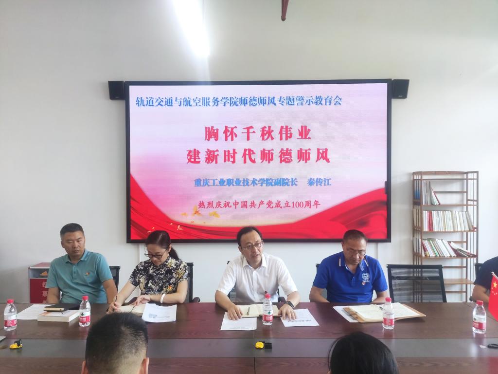 为持续加强教师师德师风建设,提高教师职业道德素养,提升教师队伍整体素质,9月24日,学校轨道交通与航空服务学院在第一实训楼4楼办公室召开进一步加强师德师风专项教育动员暨警示教育大会。会议邀请学校秦传江副院长做专题培训。轨道交通与航空服务学院领导及全体教师参加会议。会议由轨道交通与航空服务学院党总支书记、院长钟富平主持。