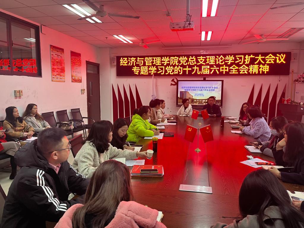 日前,学校经济与管理学院党总支在二教会议室专题组织学习党的十九届六中全会精神,学院党总支委员、各党支部书记和支部委员参加会议。会议由学院党总支书记周庆主持。