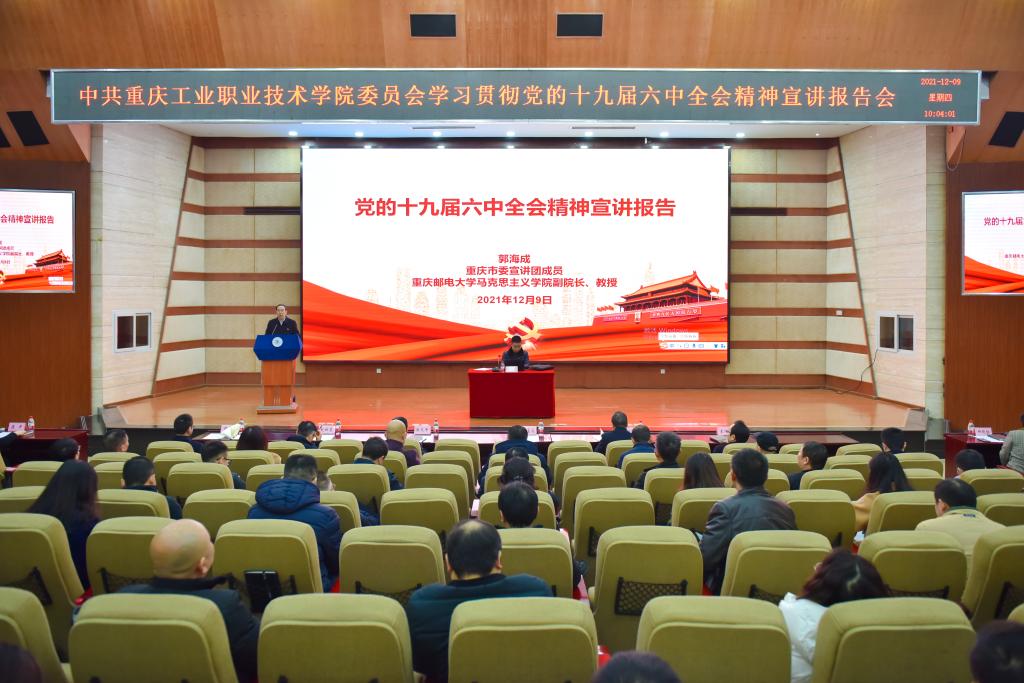 为深入学习宣传贯彻党的十九届六中全会精神,引导广大党员干部、师生员工深刻领会党的十九届六中全会的重大意义、精神实质,12月9日上午,学校召开党委理论学习中心组学习(扩大)会议暨党史学习教育专题学习读书班,重庆市委宣讲团成员,重庆邮电大学马克思主义学院副院长、教授郭海成宣讲学习贯彻党的十九届六中全会精神。学校全体党委委员、科级以上干部、思政课教师、全体辅导员以及学生代表参加会议,会议由学校党委书记王官成主持。