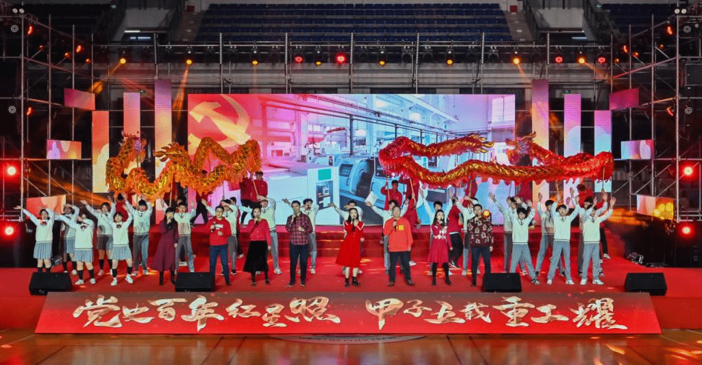 晚会采取线上直播方式,围绕“党史百年红星照,甲子五载重工耀”主题,以歌舞表演、剧场配音、花式走秀、致敬老兵、现场抽奖等方式营造了欢庆繁盛的氛围。