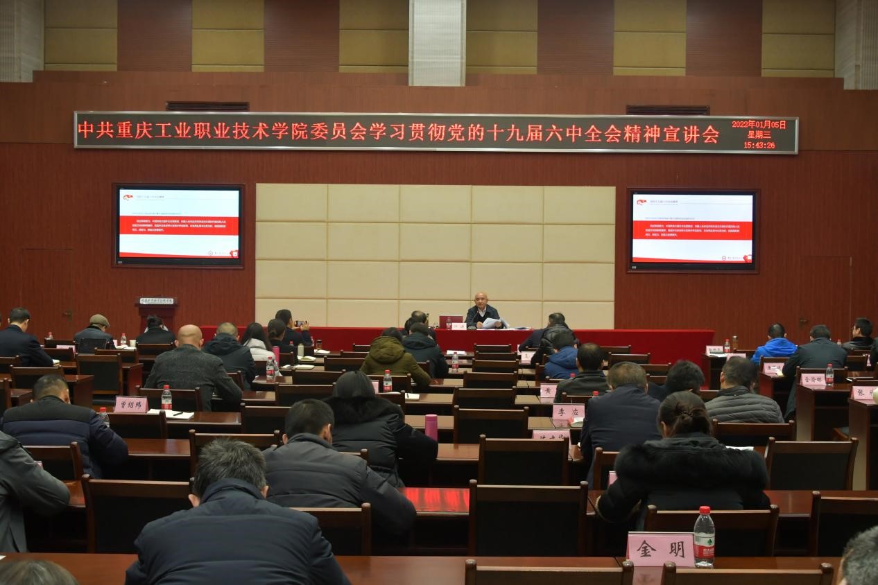 为深入学习宣传贯彻党的十九届六中全会精神,引导广大党员干部、师生员工深刻领会党的十九届六中全会重大意义和精神实质,1月5日,学校召开党委理论学习中心组学习(扩大)学习会议暨党的十九届六中全会精神宣讲会,市委教育工委“进校园”宣讲队成员、市委教育工委委员、市教委二级巡视员、机关工会主席帅逊作学习贯彻党的十九届六中全会精神专题宣讲。学校全体党委委员、副处级以上干部(含纪检员、组织员)参加会议,会议由学校党委书记王官成主持。