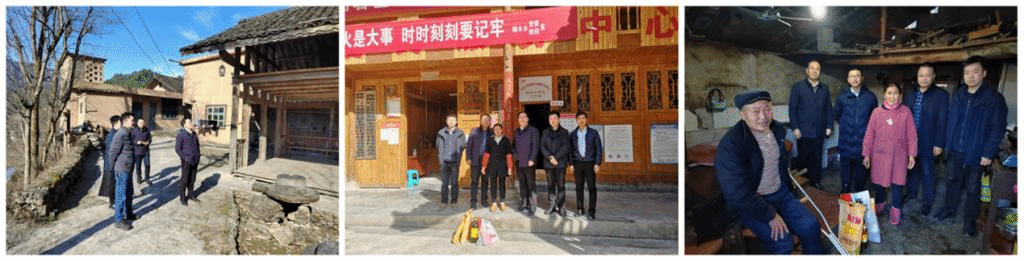 徐益副书记深入了解了3位驻村书记的工作和生活情况,认真聆听他们在工作中遇到的困难和阻力,提出了要充分利用当地农副产品、旅游研学等资源提高地方经济收入的工作思路。为了让当地困难群众过好新年,徐益副书记一行还分别慰问了山羊村肖文明、红庄村侯书清和清泉村万长海3位困难户。徐益副书记仔细询问他们的健康状况、基本生活情况和实际困难,代表学校向3位困难群众送去了粮、油、腊肉等过年物资和新春祝福。