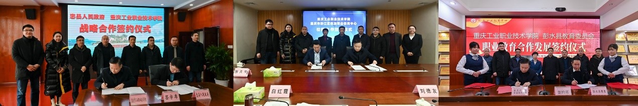 深入调研,探索职业教育协同发展路径。调研组一行走访了彭水县、酉阳县、黔江区等6个区县中等职业院校,与地方政府、企业和职教中心就推动校地、校企、校际深度合作,促进地区经济社会发展发挥职教作用等方面深入交换了意见。郭天平院长表示,希望能与各中职院校加强交流与合作,共同促进职业教育创新发展。最后,学校与忠县签订了战略合作协议,与彭水县教委和酉阳县教委签订了职业教育合作发展协议,与2所中职院校签订校际对口帮扶协议。