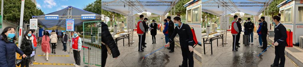 演练严格按照有关规定和制定流程有序进行,实时模拟学生在返校报到时以及在宿舍中出现发热等情况时的应对措施。演练设置了学生返校报到、学生寝室出入、食堂就餐演练、发热人员应急处理、全员核酸检测及疫苗接种异常反应处理等环节,演练人员协调配合,严格牢筑疫情防线,顺利完成了本次防控演练活动。
