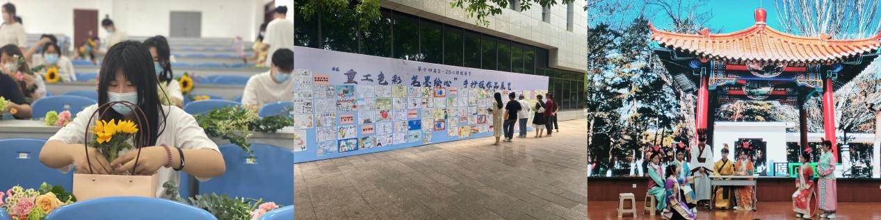 二是多样化个性特色活动开展,滋润学生心理成长。“花之物语,心之所向”花艺沙龙活动,让师生们在感受插花艺术的魅力中舒缓压力;“重工色彩,笔墨绘心”手抄报展览活动让师生们在笔墨沁润间涤荡心灵。多项特色活动的开展,将德育、美育与心育三者相融合,多方面践行育人理念,营造了健康向上的校园氛围。