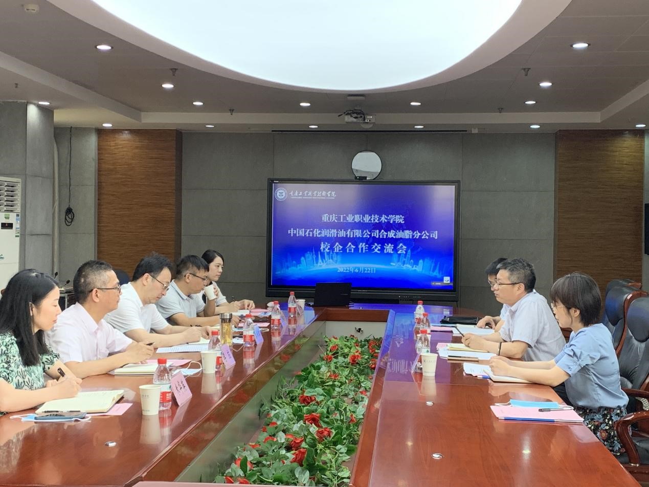 日前,中石化润滑油合成油脂分公司党委书记曹毅,合成油脂研究院副院长、合成油脂专家吴旭东,综合办公室经理王明江,人力资源主管吴艳一行来校进行校企合作调研交流。学校党委委员、副院长秦传江,科研处处长、产教融合发展研究中心主任袁苗达,化学与制药工程学院党总支书记、院长李应热情接待了调研组一行。双方在办公楼六楼会议室召开校企合作交流会。会议由李应书记主持。