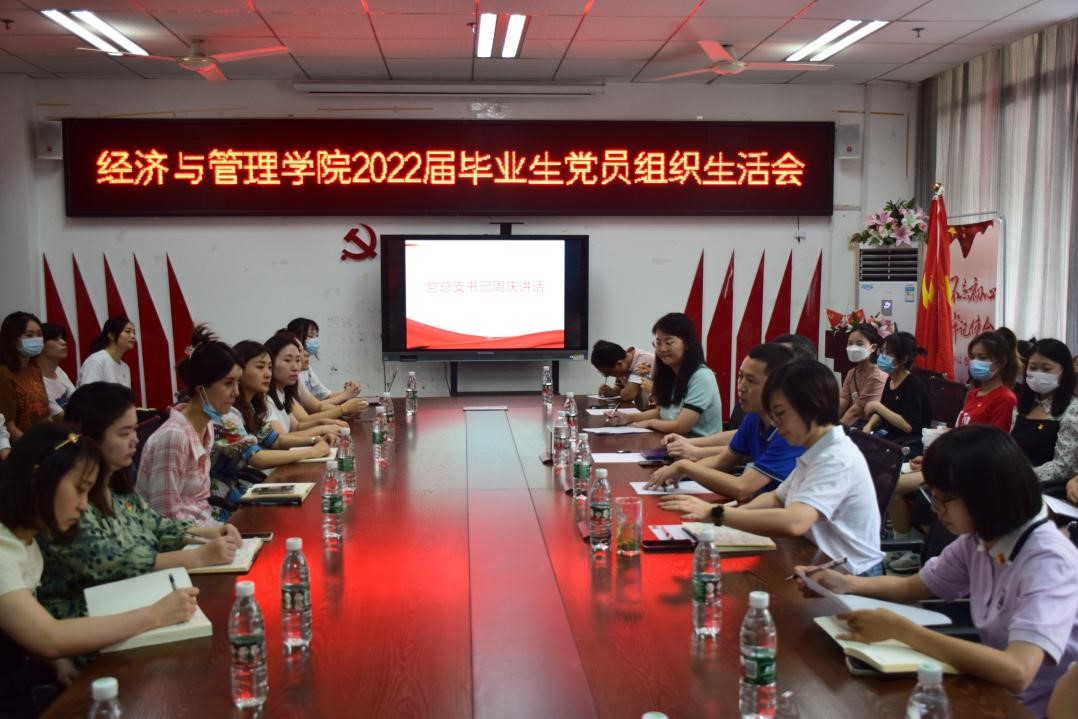 日前,学校经济与管理学院开展了2022届毕业生党员组织生活会。经济与管理学院党总支书记周庆,副书记、副院长金渝琳,副处级组织员刘兰泉以及学生党支部全体党员师生参加会议。