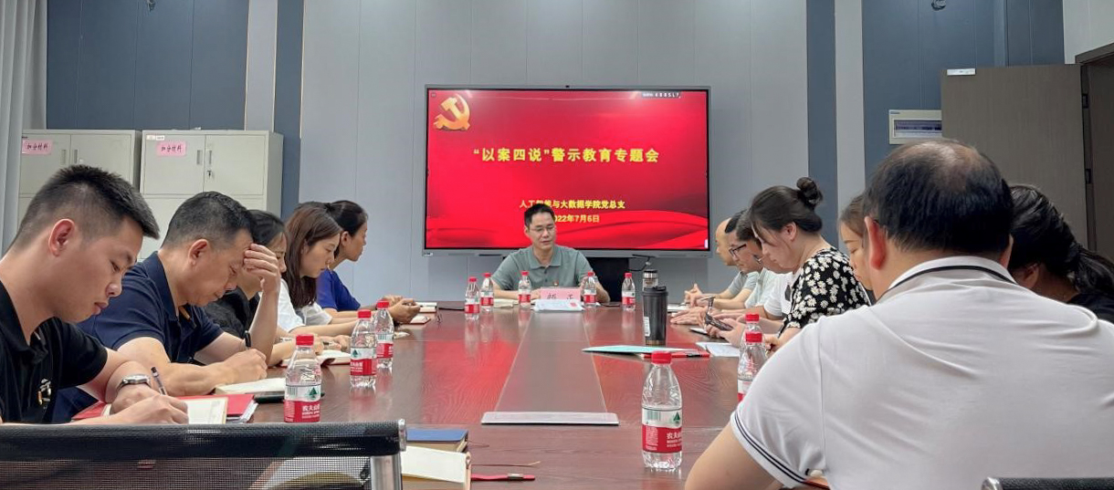 为进一步加强党风廉政建设,筑牢干部廉政思想防线,日前,学校纪委书记颜正深入人工智能与大数据学院开展“以案四说”警示教育专题会议。学院党总支委员、各党支部委员以及科级以上干部参加会议。会议由人工智能与大数据学院党总支书记唐腾健主持。