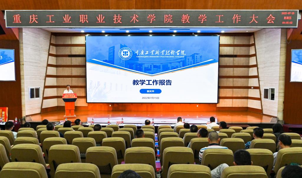 学校党委副书记、院长郭天平在教学工作大会上作教学工作报告。他讲到,举行教学工作大会是学校在“双高计划”和提质培优行动计划建设的中期全面科学系统推进教育教学改革,贯彻新理念、把握新机遇、实现新发展的一次重要会议,具有重要意义。会议的主要任务是深入学习习近平总书记关于职业教育的重要批示指示精神,深入贯彻落实新修订的《职业教育法》,科学总结“双高计划”建设实施以来学校在教学领域取得的成绩和经验,剖析当前存在的问题,并对下一步高质量推进学校教学工作进行部署安排。他从“党建引领,确保教育教学改革正确方向”“立德树人,一体化打造思政课程和课程思政品牌”“深化改革,创新人才培养模式”“重构专业群,优化专业布局”“智慧赋能,提升教学信息化水平”“校企共育,提升学生社会竞争力”“人才强校,提升师资队伍硬实力”七个方面全方位介绍了学校在各发展与建设领域的重大成果与成效。郭天平院长进一步讲到,学校取得的一系列重大成果和成效的主要原因是学校始终坚持以习近平新时代中国特色社会主义思想为指导,坚持社会主义办学方向,落实立德树人根本任务,不断深化产教融合、校企合作;始终坚持面向人人、因材施教的教育教学的方针,坚持德技并修工学结合、面向市场促进就业、面向实践强化能力培养;始终坚持把握发展的机遇,以“双高计划”和提质培优行动计划为契机,坚持目标驱动、成果导向、开放办学,以智慧赋能教育教学,全面科学推进教育教学改革的实践;始终坚持人才强校,充分依靠全体老师,推动教师与学校的同步发展、共同进步。