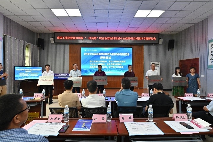 为深入学习习近平总书记视察重庆重要指示精神,贯彻市第六次党代会精神,进一步推进落实学校与石柱县在2022年初签署的《战略合作协议书》有关项目,日前,学校在石柱县委党校举办了“一区两群”职业教育协同发展中心授牌仪式暨乡村振兴专题研讨会。石柱县政府党组成员、副县长石华,石柱县教委副主任谭小红,黔江区民族职业教育中心党委书记、校长白红霞、副校长刘德友,石柱职业教育中心校长谭春祥、副校长冉锋,忠县职业教育中心副校长陈世文,秀山职业教育中心副校长陈猛,酉阳职业教育中心副校长彭仁全,彭水县职业教育中心副校长陈家斌,学校党委副书记、院长郭天平,党委委员、副院长秦传江、纪委书记颜正、宣传部部长钟艳红出席授牌仪式,6个职教中心的相关干部和我校在石柱参训的中层干部代表参加会议。会议分为两个阶段,授牌仪式阶段由学校副院长秦传江主持,研讨会议阶段由学校纪委书记颜正主持。