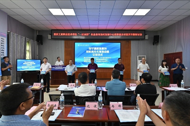 学校院长郭天平在授牌仪式上讲到,今年年初,学校调研组一行深入渝东南、渝东北部分区县,就发挥国家级“双高计划”高水平学校作用,推动“一区两群”职业教育协同发展与服务乡村振兴建设开展了为期6天的调研。今天举行的“一区两群”职业教育协同发展中心授牌仪就是贯彻落实习近平总书记对重庆和职业教育的重要指示批示精神,全面推进今年年初,学校与6个区县签署的合作协议的有关任务,切实助力“两群”地区中职学校共同实现高质量发展。他进一步讲到,学校将从三个方面与各中职院校共同助力乡村振兴、助推“一区两群”协调发展。一是提高政治站位,为职业教育助力乡村振兴“赋能”。要充分认识到乡村振兴战略将作为国家新一轮经济发展的重要部署。在乡村振兴的“五大振兴”中,“人才振兴”是重点,通过“一区两群”职业教育协同发展,加强技能型人才的培养与培育,让职业教育培养的人才深入到乡村振兴的第一线,推动“两群”经济高质量发展。二是建立协同机制,为“两群”职业教育高质量发展“添彩”。建立纵向贯通、横向融通的现代职教体系,建立“一区”优势与“两群”特色相融合的帮扶机制,真真正正实现优质课程资源、优质教学设备、优秀师资力量的共享共建。三是积极探索,为助推“一区两群”协同发展“添力”。在市第六次党代会上提出的重庆今后五年的发展目标中,对职业教育发展作出了重要部署,为学校助力区域实体经济发展、制造业转型升级提供了政策指引。