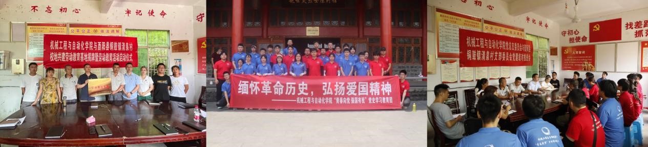 学校机械工程与自动化学院组建了“青春筑梦”乡村振兴促进团和“青春向党,强国有我”党史学习教育宣讲团,他们走进酉阳县铜鼓镇清泉村开展了党建结对、共建劳动教育基地等活动。机械工程与自动化学院党总支委员会与清泉村支部委员会召开了党建结对推进会,以党建共建为契机,助力乡村振兴建设发展,并与清泉村开展了校地共建劳动教育基地揭牌暨劳动教育活动启动仪式,为广大学子搭建了社会实践平台,提供了更多的创新实践劳动教育机会。团队成员们走进农户家庭开展了“学习党史践初心,关爱老人暖人心”走访慰问活动,宣讲安全教育和防范养老诈骗,聆听“五老故事”追忆峥嵘岁月,参观了龙潭古镇赵世炎陈列馆,重温了革命足迹,开展了家电义务维修实践活动以及“圆梦乡村儿童图书角”“童心向党,爱伴成长”和“书法育人扬文化,翰墨飘香满乡村”等活动,用实际行动践行青春誓言,用责任担当助力乡村振兴。