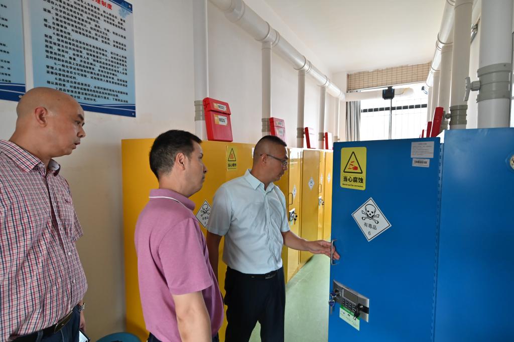 检查组一行先后深入学校商业街、学生宿舍、智慧教室、科技创新团队工作室、产教融合项目、化工用品器械与试剂储藏室等重点场所进行逐一排查,每到一处详细了解各项工作准备情况以及是否存在安全隐患,并对存在的问题进行现场指导,立即整改。
