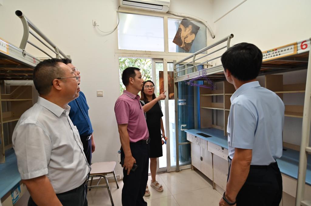 为确保师生返校工作平稳有序进行,深入排查化解校园安全风险,扎实做好学校2022年秋季新学期各项工作,8月29日,学校开展2022年秋季新学期拉网式安全综合检查。学校党委副书记、院长郭天平,党委副书记张荣,党委委员、副院长徐兴旺带领党政办公室、党委宣传部、学生处、基建后勤处、安全稳定办公室、教务处、产教融合发展研究中心等相关职能部门负责人及工作人员组成联合检查组,开展校园安全检查工作。