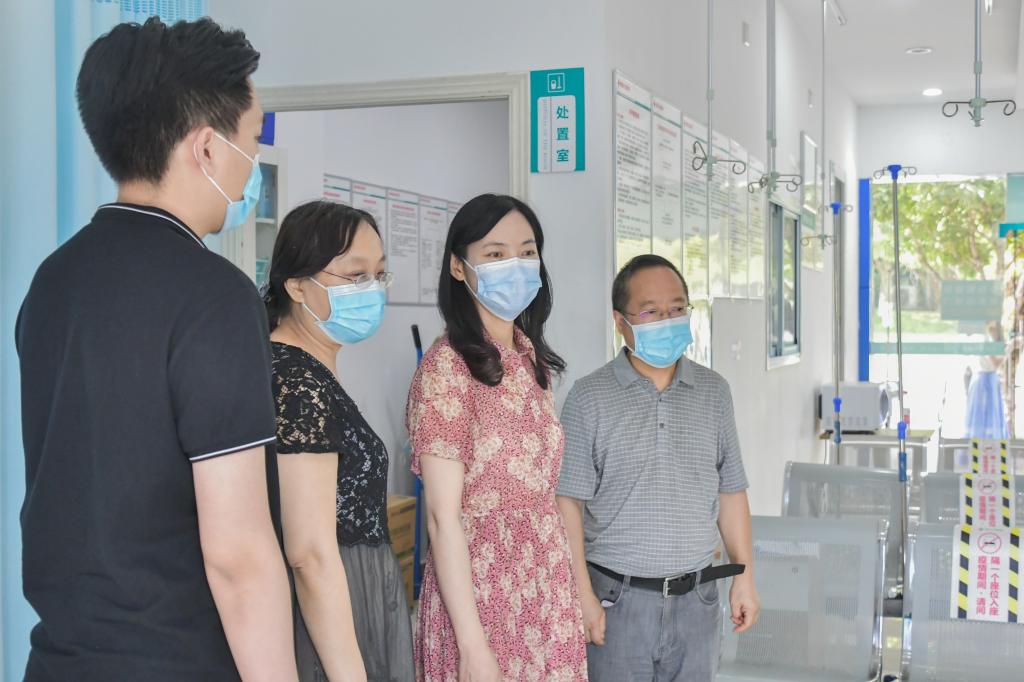 督导组一行在学校办公楼一楼疫情防控工作办公室听取了秋季开学准备、疫情防控、安全稳定工作情况汇报,详细查阅了开学疫情防控工作方案、师生健康信息台账、门岗管理、核酸检测安排等情况,详细询问了学校疫情防控工作举措,实地查看了学校防疫物资储备情况。随后,深入学校合作医院实地查看医院门诊和临时留观点等保障情况。