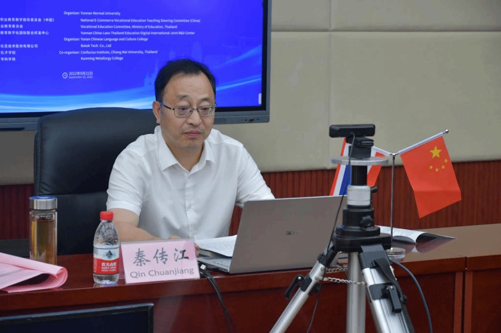 日前,由云南师范大学、全国电子商务职业教育教学指导委员会、泰国教育部职业教育委员会和云南省中老泰教育数字化国际联合研发中心联合主办的2022中泰“中文+职业技能”教育合作论坛在线上举行。会议以“共建数字技能学习生态,共筑中泰青年美好未来”为主题,中泰两国国际中文教育和职业教育界专家学者以及200余所职业院校代表参加论坛,我校副院长秦传江,经济与管理学院党总支书记周庆应邀参加会议。