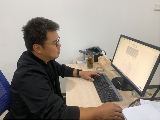 学校人工智能与大数据学院教师党员李金珂伏案工作