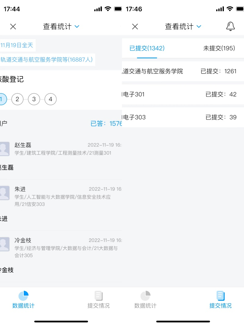 二是以数字化手段开发核酸登记微应用。信息中心工作人员在短时间内完成了微应用的开发与调试,只需要扫一扫登记码即可完成核酸检测信息的上报,实现了校内核酸检测数据与校内人员台账数据快速校验匹配,大幅提高校内人员核酸检测情况摸排效率。