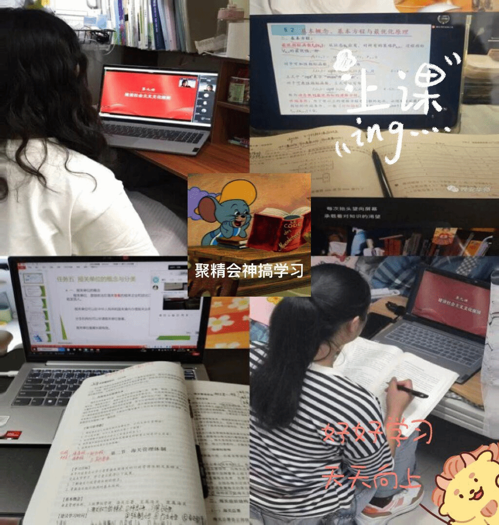 学习不止步。美味的饭菜补充能量后,重工学子们活力满满,尽情投入到学习中,屏幕里传来熟悉的讲课声,面前是书本和笔记,学习的热情一如往常。疫情使我们在空间上分离,但热爱学习的心只会更加贴近,准时参加每一堂课,认真聆听每一个重点,及时进行课前预习和课后复习,每一天都争做最好的自己。师生联动,保障教学,网课无距离,线上不停学!