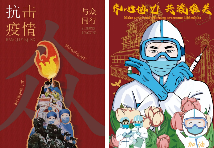在张珈铭老师的《新媒体传播学》,何明、张文(女)老师的《字体与版式设计》课堂上,学生们通过新媒体文章的撰写和发布、字体与版式的设计,表达了对重工上下齐心抗疫的深切体会。