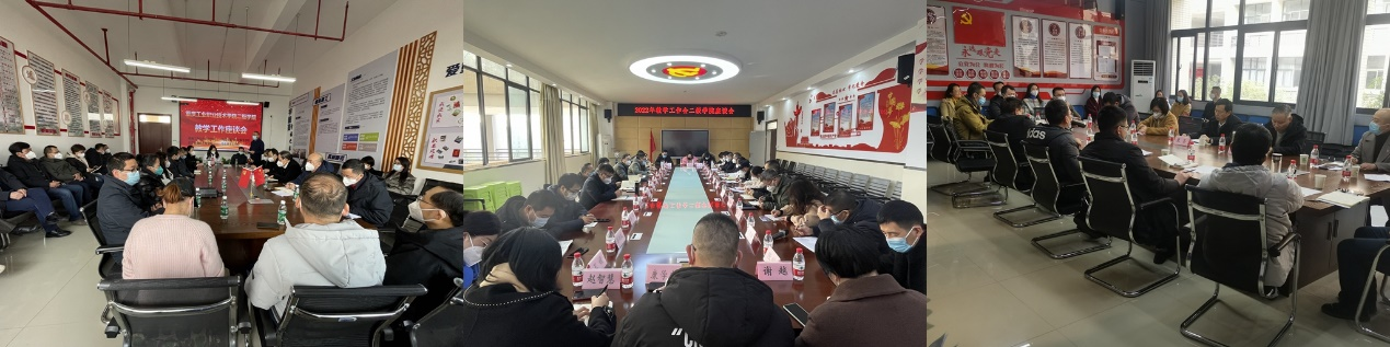 教学工作会分为两个阶段,上午,教务处处长黄文胜总结了2022年教学工作,各二级学院院长就过去一年的教学工作纠问题、找原因、提思路,逐条逐项列晰2023年工作规划。学校党委副书记、院长郭天平在认真听取了教务处和各二级学院负责人工作汇报后表示,各单位围绕教学工作做了实事求是的发言,非常中肯,各二级学院要明确自己的目标,找到努力的方向,认真总结反思过去一年教学工作中的不足,合理正确规划明年教学工作安排,团结一心,振奋精神,树立信心,坚定不移地向目标靠拢;各职能部门要认真总结分析各二级学院提出的意见和建议,吸取经验,共商共议,为各二级学院的发展难处对症下药,开放理念,凝聚共识,为学校职业教育发展贡献力量。郭天平院长强调,一要坚持实事求是,理性面对问题与成绩,提高自身能力水平,奋力推进学校发展再上新台阶;二要坚持与时俱进,精准把握职教发展新形势新要求,沉心静气,潜心专研,实现学校重点、关键领域的新突破;三要发挥优势实力,精益求精做特做优教学工作,以建设高水平本科层次职业学校为契机,牢牢抓住大好形势,激发内生动力,高水平提升教育教学工作质量,持续用力抓好“提质培优”与“双高计划”建设;四要强化责任担当,激发动能续写学校高质量发展新篇章,要强化统筹规划布局新发展、要强化部门联动展现新作为、要创新推动落实取得新突破、要强化能力提升作出新贡献,坚定信心,乘势而上,不断为建设社会主义现代化新重庆谱写职业教育新篇章。