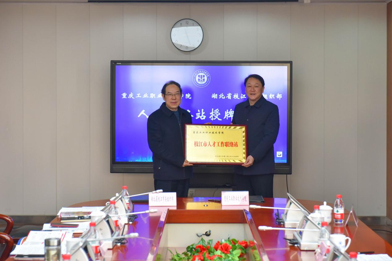 学校党委书记王官成与枝江市委组织部部长李兴苗举行人才工作联络站授牌仪式