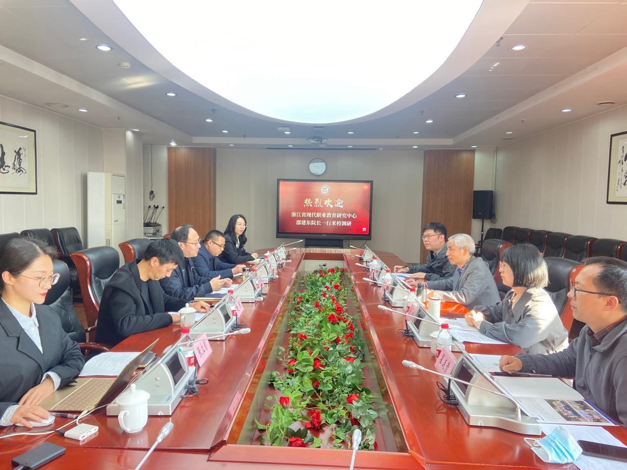 3月14日,浙江省现代职业教育研究中心执行负责人、金华职业技术学院职教院院长邵建东一行4人来校调研。学校发展规划处处长陈友力,人事处副处长谢伟峰以及相关负责人热情招待了调研组一行,并在办公楼6楼会议室召开座谈会。会议由陈友力处长主持。