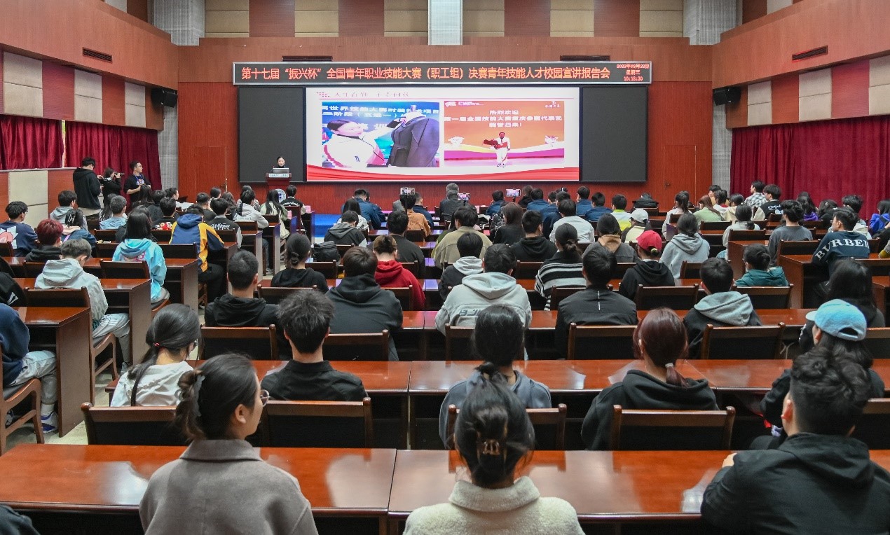 在师生互动环节,与会学生踊跃发言,两位主讲人耐心细致地一一回答了同学们的提问,并寄语广大青年学子,新时代要不断发扬创新和敬业精神,追求精益求精的实践品质,努力学习专业知识,掌握过硬本领,为全面建设社会主义现代化强国踔厉奋斗。与会人员纷纷表示,宣讲会精彩纷呈,内容扣人心弦、令人振奋,能与大国工匠 “面对面”,进一步激发了“技能成才、强国有我”的奋进动力,对自身发展前景有了更多期待,对走好技能成才之路有了坚定目标。