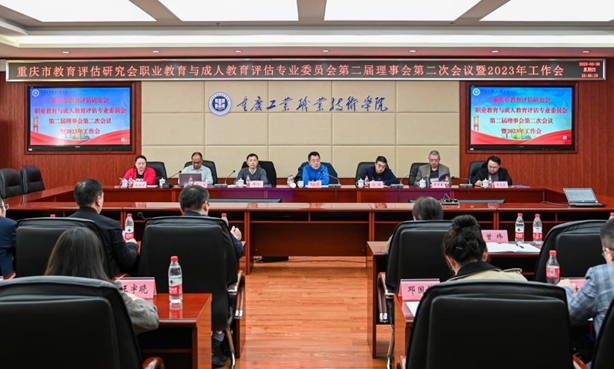 日前,重庆市教育评估研究会职业教育与成人教育评估专业委员会在我校召开第二届理事会第二次会议暨2023年工作会。重庆市教育评估研究会职业教育与成人教育评估专业委员会理事长、重庆电子工程职业学院党委书记孙卫平教授,委员会理事、重庆电力高等专科学校副校长彭登春教授、重庆商务职业学院院长江涛教授,委员会秘书长钟国祥教授、副秘书长谢龙建,重庆市教育评估研究会秘书处薄晓丽,全体理事单位、理事及相关工作人员参加会议。会议由学校党委副书记、重庆市教育评估研究会职业教育与成人教育评估专业委员会副理事长张荣主持。