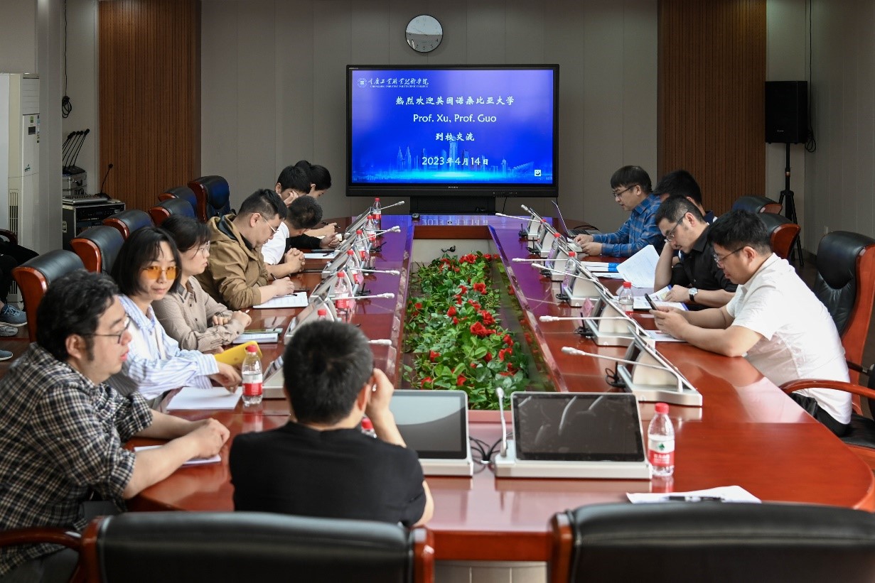 郭天平书记对英国诺森比亚大学徐斌教授、郭占虎教授一行的到来表示热烈欢迎,他从学校的发展历程及理念、国际交流合作、科研成果、人才培养等方面介绍了学校的基本情况。郭天平书记表示,希望两校能进一步推动国际交流、科学研究合作,为我校师生创造更加广阔的国际化科研交流平台。