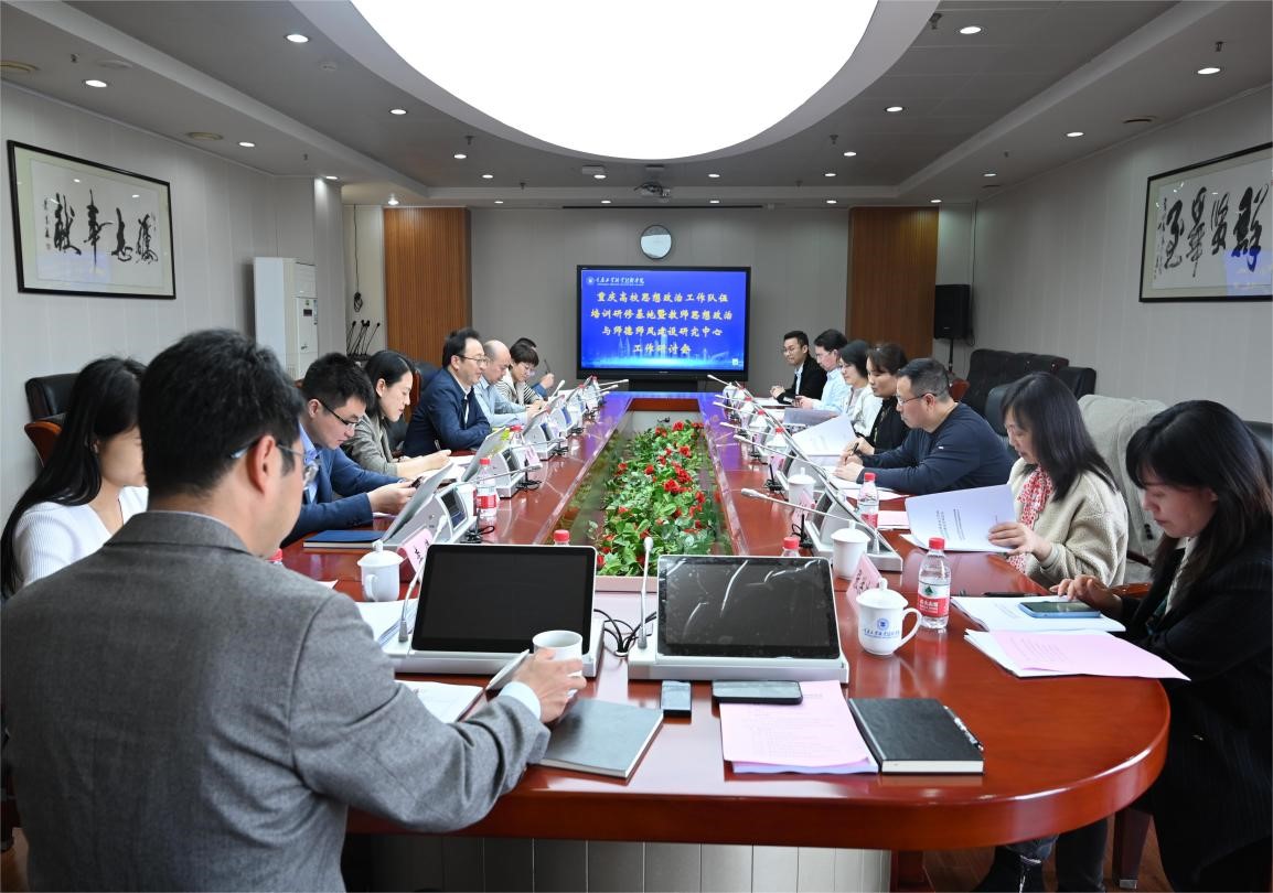 日前,学校召开了重庆高校思想政治工作队伍培训研修基地暨教师思想政治与师德师风建设研究中心工作研讨会。市教委宣教处副处长尤春艳,渝北区区委宣传部调研员唐文武,市教委宣教处干部杨红,西南政法大学党委教师工作部部长陈应琴,重庆城市管理学院党委委员、宣传部部长喻永均,重庆工程职业技术学院马克思主义学院院长张洪冲,西南大学教育学部副教授易全勇等出席会议。学校党委委员、副院长秦传江,马克思主义学院党委副书记、院长袁希参加会议。会议由秦传江副院长主持。