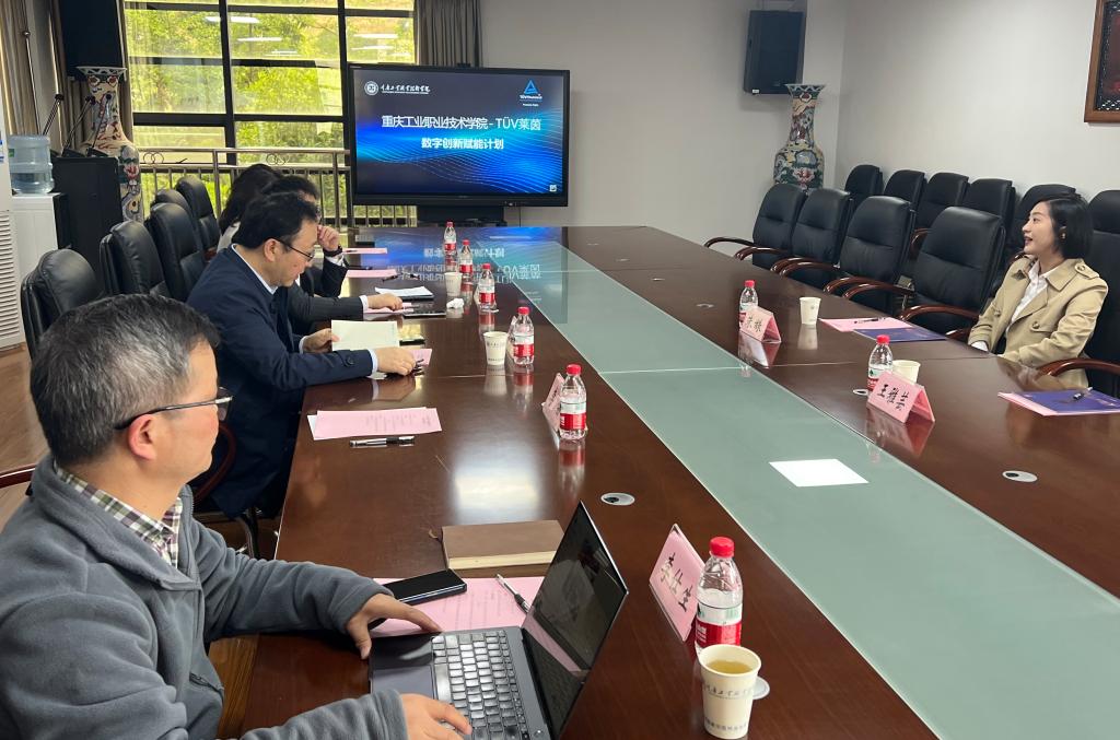 朱姝经理介绍了“TÜV莱茵数字创新赋能计划”项目,并表示“TÜV莱茵学院”始终致力于以“双元制”模式开展职业教育与培训,莱茵学院将持续深化与我校的合作,助力高质量人才培养。随后,双方就协议签订、项目实施等方面进行了交流洽谈。
