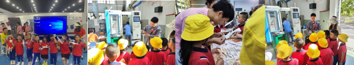 在智能制造基地,学校学生志愿者们为小朋友们展示了新时代智能制造技术,随着各类机械设备的运转小朋友们的好奇心也随之被点亮;在车辆工程学院实训基地,志愿者们为小朋友们科普了现代智能网联汽车的相关知识与交通注意事项;在海尔智能家居实训基地,志愿者讲解员为小朋友及家长们展示了现代科技家居的智慧功能,让小朋友们在参观体验中体会到现代家居设计为生活带来的便利;在模拟轨道交通车站机电设备实训室,讲解员们为小朋友们介绍了轨道交通机电知识;在航空客舱模拟室,身穿空乘制服的空乘专业志愿者为小朋友们上了一堂生动的“飞行课”,介绍了飞机客舱的构造和航空知识,小朋友们还进行了飞机模型拼装和试飞比赛。