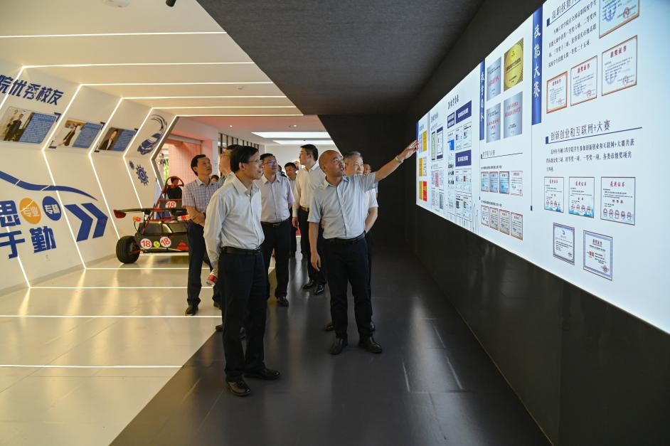 向明灿副局长一行实地考察了经济与管理学院、车辆工程学院实训中心、机械工程与自动化学院智能制造公共实训中心,调研过程中,学校经济与管理学院院长金渝琳、车辆工程学院院长李雷和机械工程与自动化学院院长裴江红分别对学院人才培养、专业建设、校企合作等情况作现场汇报,向明灿副局长非常关心学校人才培养质量、毕业生就业去向以及校企合作模式,他一边询问一边听取汇报,深入了解了各学院招生规模、专升本情况、教育教学以及产教融合情况,进一步了解了学校在推动引导学生就业方面的工作举措。向明灿副局长对学校在人才培养过程中注重学生德智体美劳全面发展的治学成效表示高度赞赏,对学校育人理念予以充分肯定。