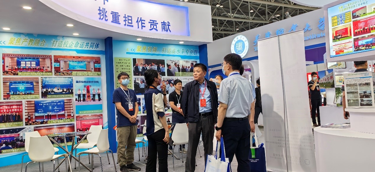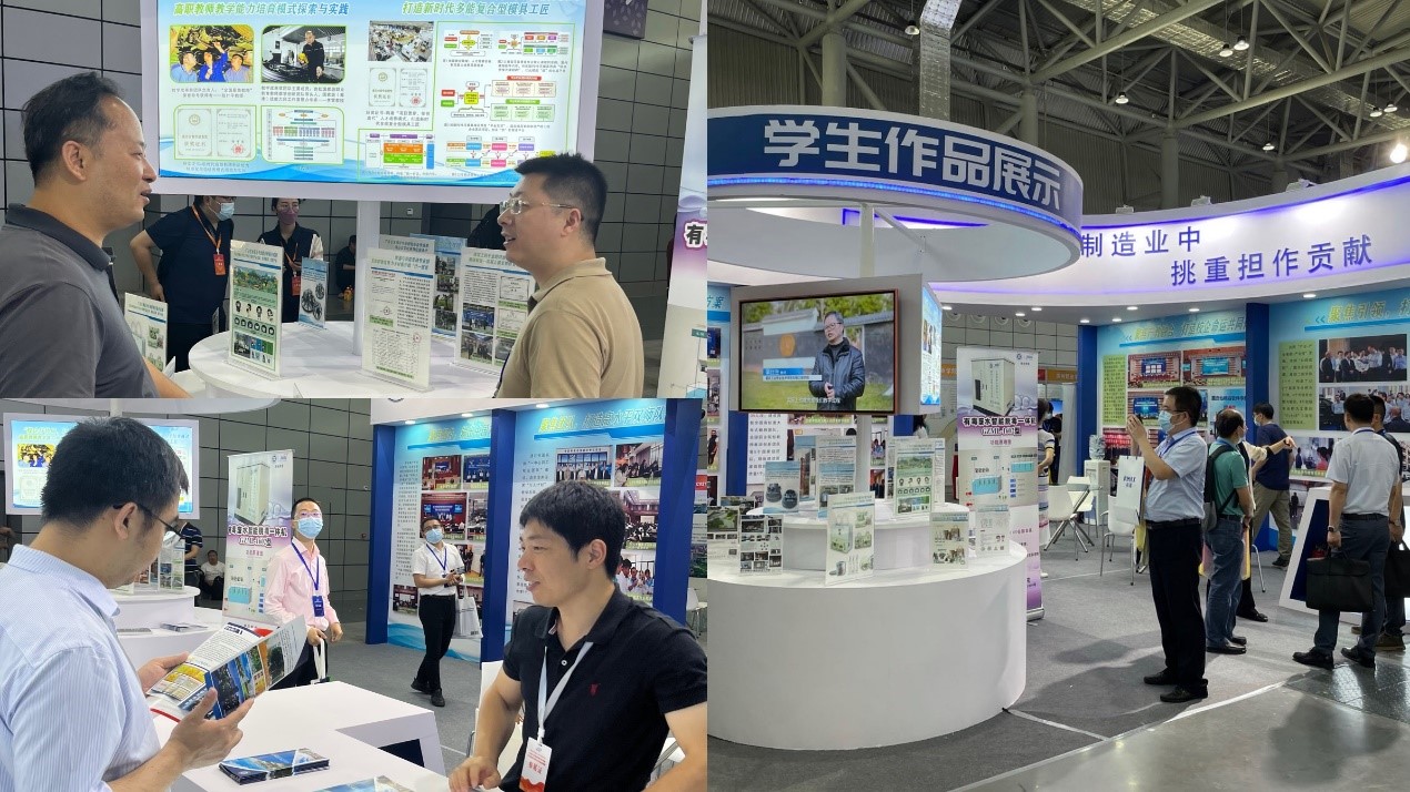 为展示中国特色高水平高职学校和专业建设计划中期建设成果,助推“双高计划”持续推进和提高,全国职业高等院校校长联席会议设置了“双高计划”中期建设成果展,展示各学校“双高计划”建设成果和办学成效,交流“双高”建设经验与做法。我校以“在高赋能先进制造业中挑重担作贡献”为主题,展示了“打造2+4+8高水平专业群”“构建校企命运共同体”“培育五大师资团队”“提升社会服务水平”“深化国际合作交流”等方面的特色做法与成效,借助实物图片展出的方式展现了学校“双高计划”建设以来全方位教育教学改革成果,受到了现场参展观众的高度肯定与好评。