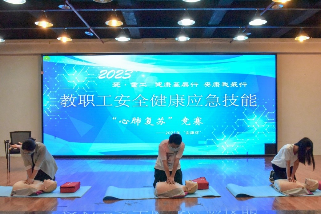 为全面贯彻落实党的二十大精神和习近平总书记关于安全生产的重要论述,提升学校治理水平,不断提高教职工安全健康意识和安全应急技能,增强教职工应对突发生产安全事故能力,日前,学校工会组织开展了“爱·重工”系列活动——2023年“安康杯”教职工安全健康应急技能“心肺复苏”竞赛活动,活动旨在营造“人人学习急救,个个掌握急救”的良好氛围,为需要帮助的“患者”生命安全打下坚实基础。活动邀请了重庆市急救医疗中心专家担任指导专家和比赛评委,经赛前动员,共计50余名教职工积极踊跃报名参加活动。