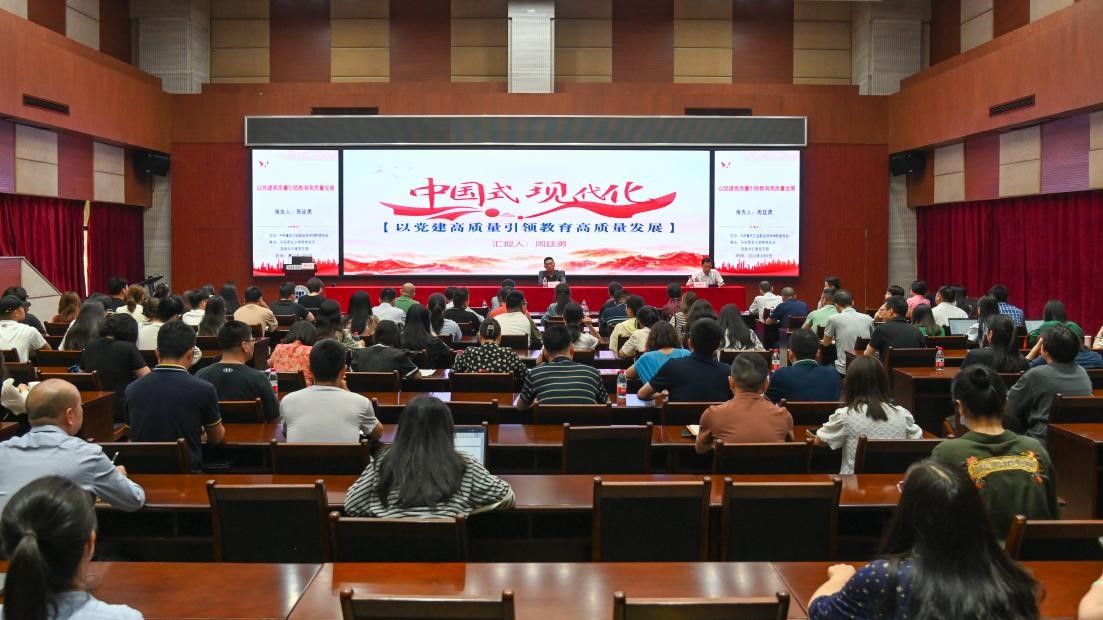 为深入推进学习贯彻习近平新时代中国特色社会主义思想主题教育,以高质量党建引领学校高质量发展,6月9日,学校在第二学术报告厅举办党建与职业教育高质量发展讲座。会议邀请了中共重庆市委党史研究室副主任周廷勇作专家报告。学校全体在家校领导,各二级学院党总支书记、组织员、支部书记代表,直属党支部全体支委,党政办公室(审计处)全体人员以及马克思主义学院全体教师聆听报告。报告会由学校党委副书记张荣主持。