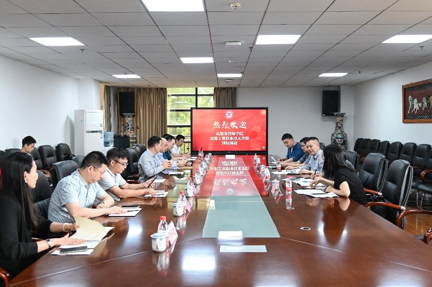 日前,成都市技师学院 成都工贸职业技术学院党委书记王涛,党政办公室主任林忠华,教务处处长徐健,汽车工程学院党总支书记、院长路畅,电气工程学院党总支书记、副院长周皇卫一行5人以及广州中望龙腾软件股份有限公司相关负责人到校调研。学校党委书记郭天平,党政办公室(审计处)负责人陈磊,教务处处长黄文胜,科研处(产教融合与发展中心、成果转移转化办公室)处长袁苗达,二级学院负责人热情接待了调研组一行,并在办公楼二楼会议室召开座谈会。会议由郭天平书记主持。