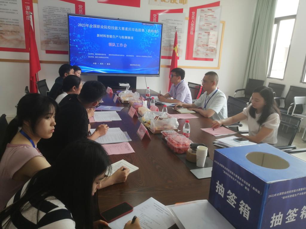 日前,由重庆市教育委员会、重庆市经济和信息化委员会、重庆市财政局、重庆市人力资源和社会保障局主办,学校化学与制药工程学院承办的2023年全国职业院校技能大赛重庆市选拔赛(教师赛)新材料智能生产与检测赛项顺利开赛。重庆市教科院职成教研究所教研员罗艳,学校化学与制药工程学院党委书记、院长李应以及全体裁判、领队和选手代表参加会议。会议由罗艳教研员主持。