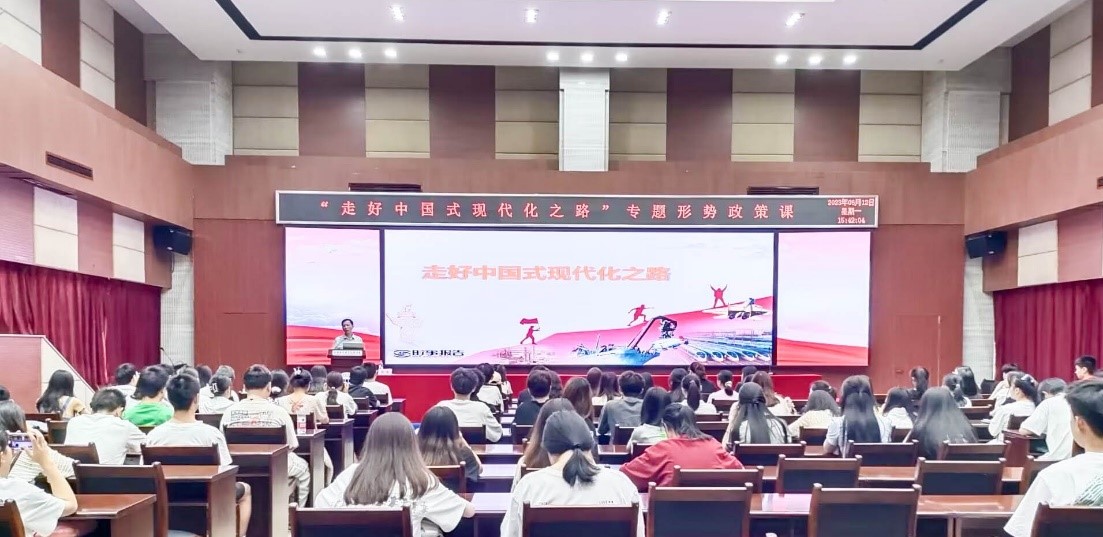 为深入学习党的二十大精神,贯彻落实习近平新时代中国特色社会主义思想主题教育,日前,学校党委副书记张荣在第二学术报告厅作题为“走好中国式现代化之路”形势与政策课。学校电子与物联网工程学院、化学与制药工程学院师生聆听授课。